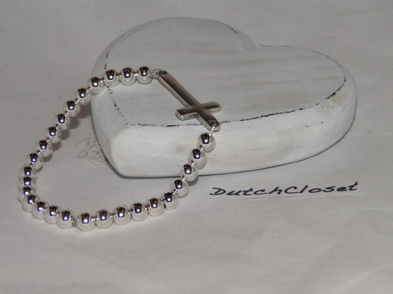 Zilverkleurige kralen met groot kruis