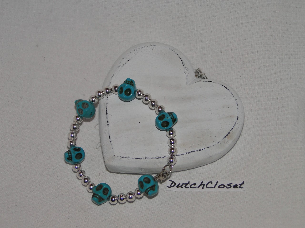 Zilveren kralen met blauwe skulls met zilveren sluiting